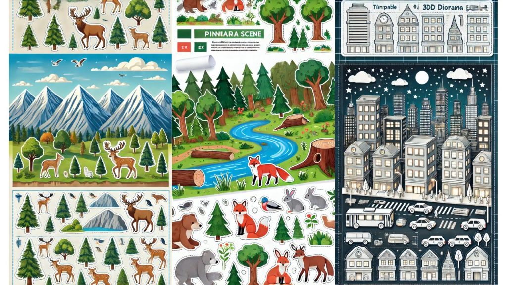 Algunos dioramas de papel para imprimir serán los siguientes, aunque son ejemplos, son muy buenos para imprimirlos en papel y poder construir un diorama sencillo.